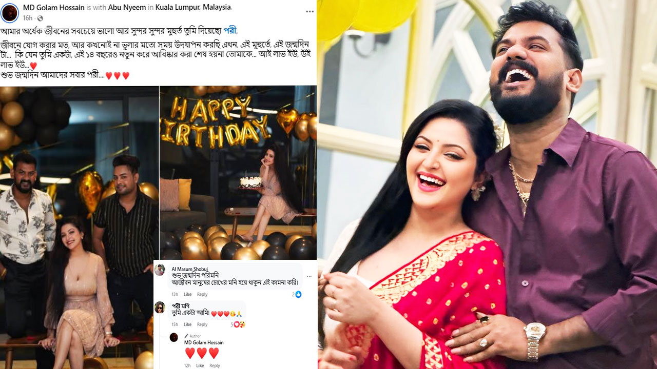 কয়েকটি ছবি পোস্ট করে ফেসবুকে গোলাম হোসেন লিখেছেন, ‘আমার অর্ধেক জীবনের সবচেয়ে ভালো ও সুন্দর মুহূর্ত তুমি দিয়েছো পরী। জীবনে যোগ করার মতো, আর কখনোই না ভুলার মতো সময় উদযাপন করছি এখন; এই মুহূর্তে এই জন্মদিন টা, কি যেন তুমি একটা।’
