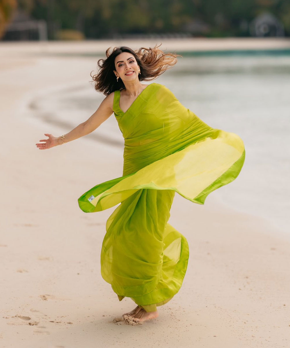 ছবিতে মিমকে একটি উজ্জ্বল সবুজ অর্থাৎ লাইম গ্রিন রঙের শাড়িতে দেখা গেছে। সৈকতের বিভিন্ন স্থানে কখনো হেঁটে, কখনো দৌড়ে পোজ দিতে দেখা গেছে মিমকে। এছাড়াও বাতাসে মিমের খোলা চুল উড়িয়ে আবার ওড়না ওড়ানো পোজও আলাদাভাবে নজর কেড়েছে।