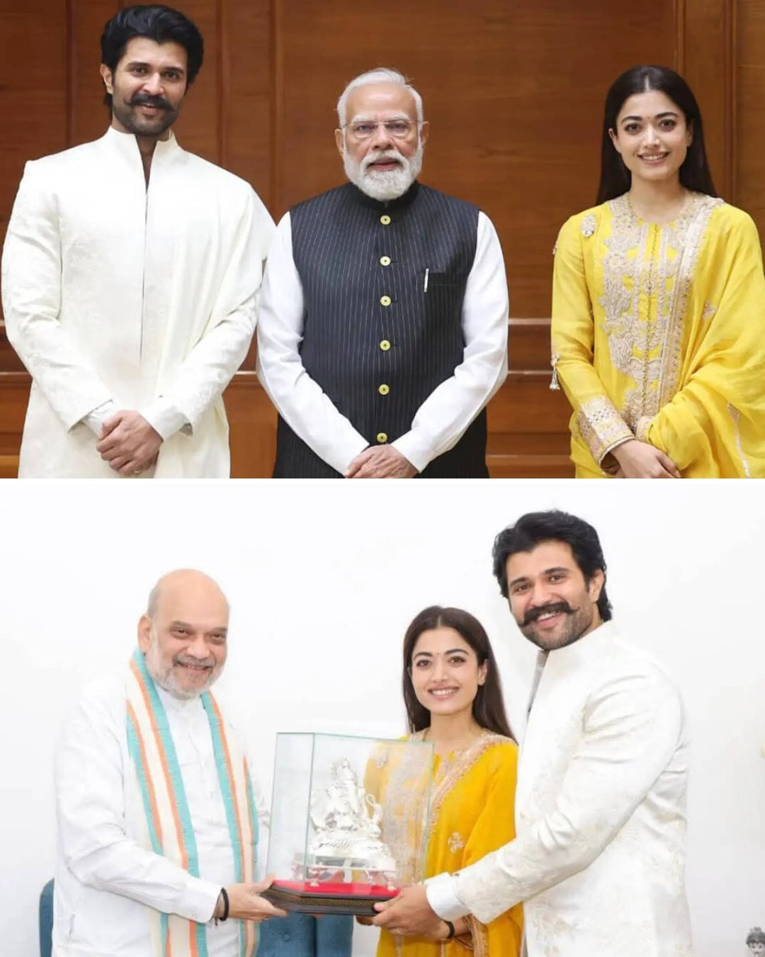 অন্যদিকে, স্বরাষ্ট্রমন্ত্রী অমিত শাহ এই দম্পতিকে আশীর্বাদস্বরূপ একটি গণেশ মূর্তি উপহার দিয়েছেন। বিজয় জানান, সেই উপহারটি বর্তমানে তাদের বাড়ির প্রার্থনাকক্ষে রাখা হয়েছে। স্বরাষ্ট্রমন্ত্রীর সঙ্গে তাদের ভারতীয় সিনেমা নিয়ে ফলপ্রসূ আলোচনা হয়েছে বলেও তিনি উল্লেখ করেন।