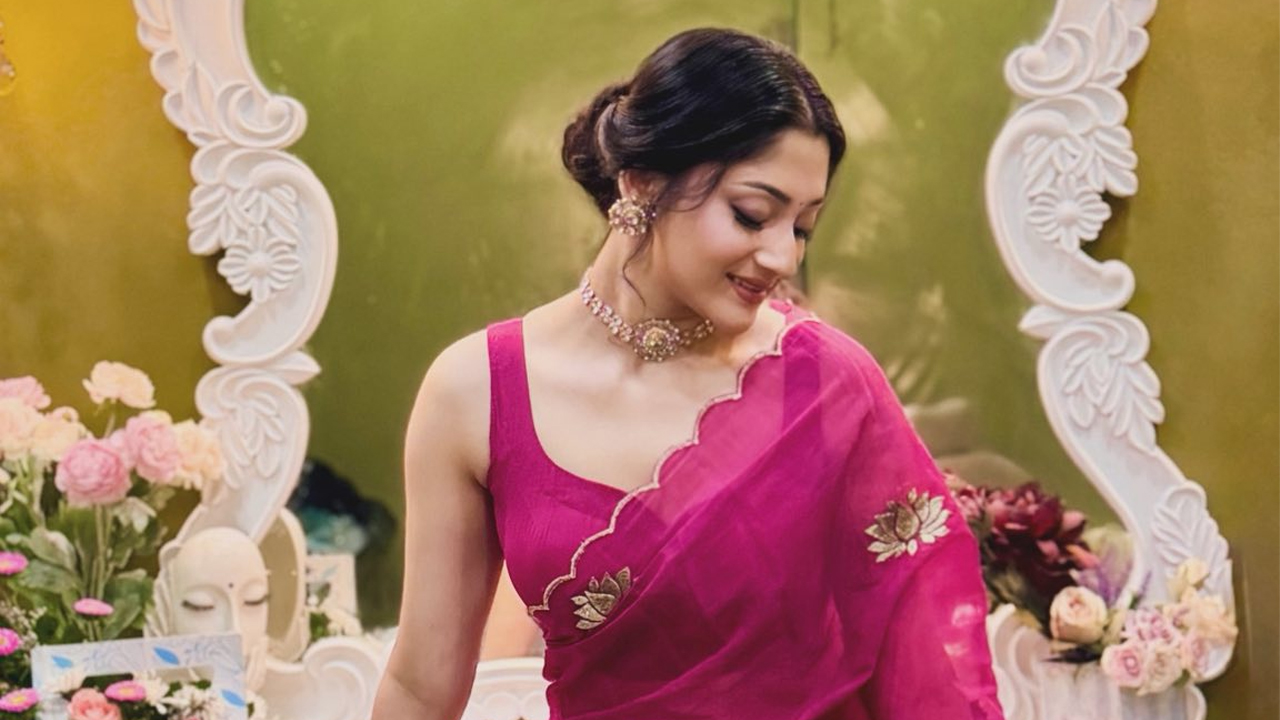শেয়ার করা ছবিগুলোতে দেখা যায়, গোলাপি রঙের শাড়িতে সেজেছেন তিনি। সোনালি নকশা করা শাড়ি আর পরিপাটি খোঁপায় বাঁধা চুল- সব মিলিয়ে তার সাজে ফুটে উঠেছে ঐতিহ্যবাহী আবহ।