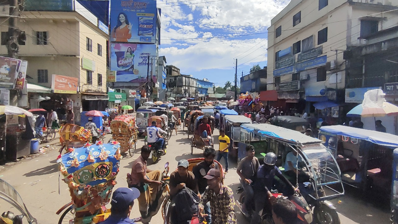 শহরের ট্রাফিক মোড়, হাসপাতাল রোড, পুরাতন বাসস্ট্যান্ড কিংবা নতুন ব্রিজ এলাকায় সকাল-বিকেল মানুষকে পড়তে হচ্ছে তীব্র যানজটে। অফিসগামী কর্মজীবী থেকে শুরু করে স্কুলের শিক্ষার্থী— সবারই সময় নষ্ট হচ্ছে অকারণে। অনেক সময় অ্যাম্বুলেন্স পর্যন্ত আটকে যাচ্ছে যানজটে।