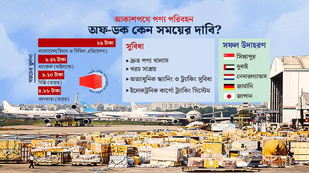 গত ১৮ অক্টোবর শাহজালাল বিমানবন্দরের কার্গো টার্মিনালে অগ্নিকাণ্ডের পর প্রায় তিন দিন আকাশপথে আমদানি–রপ্তানি বন্ধ ছিল। এতে তৈরি পোশাকসহ বিভিন্ন খাতের রপ্তানিকারকেরা বড় ধরনের আর্থিক ক্ষতির মুখে পড়েন। এরপরই এয়ার কার্গো ব্যবস্থাপনা নিয়ে নতুন করে প্রশ্ন ওঠে এবং নিরবচ্ছিন্ন কার্যক্রম নিশ্চিত করতে অফ-ডক ব্যবস্থা চালুর দাবি জোরালো হয়