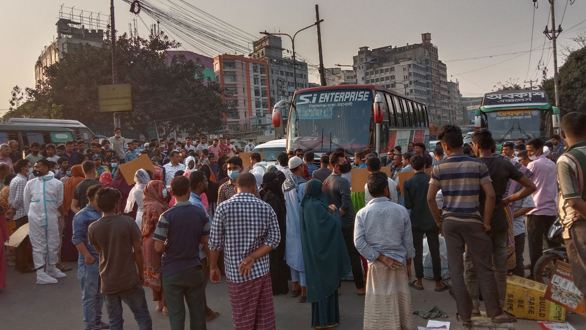 মঙ্গলবার বিকেলে মহাখালীতে হাসপাতালের সামনে সড়কে বিক্ষোভ করে প্রায় শ খানেক স্বাস্থ্যকর্মী। এ সময় তাদের কেউ কেউ পিপিই-গাউন পরে সড়কে শুয়েও পড়েন। পরে ট্রাফিক বিভাগ ও তেজগাঁও শিল্পাঞ্চল থানার পুলিশ ঘণ্টা খানেক আলোচনার পর বিকেল সাড়ে ৫টায় আন্দোলনকারীদের সড়ক থেকে তুলে দেয়।