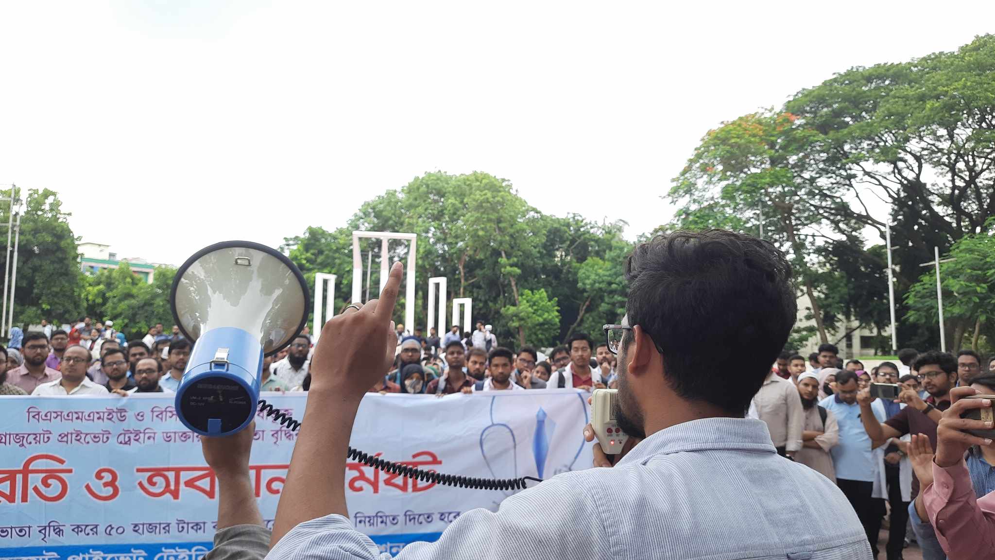 এর আগে শনিবার সকাল সাড়ে ১০টা থেকে ঢাকা মেডিকেল কলেজ (ঢামেক) হাসপাতালের গেটে অবস্থান ধর্মঘট শুরু করেন আন্দোলনরত চিকিৎসকরা। এসময় চিকিৎসকরা ‘ক্ষুধা পেটে সেবা নয়, অধিকার চাই ভিক্ষা নয়’, ‘অনুগ্রহ নয় অধিকার চাই, সামঞ্জস্যপূর্ণ বেতন কাঠামো চাই’, ‘আশ্বাস নয় প্রমাণ চাই, ৫০ হাজার ভাতা চাই’ ইত্যাদি স্লোগান দিতে থাকেন।