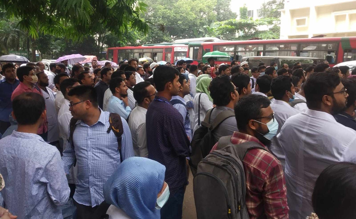 গেটে পুলিশ, বিএসএমএমইউর ভেতরে চিকিৎসকদের অবস্থান