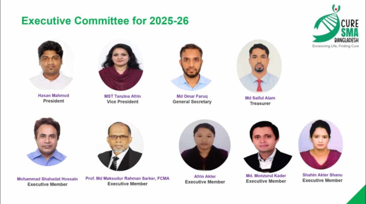 বিরল স্পাইনাল মাসকুলার অ্যাট্রোফি রোগে আক্রান্তদের কল্যাণে কাজ করা দেশের একমাত্র সংগঠন ‘কিউর এসএমএ বাংলাদেশ’ এর নতুন কমিটি গঠিত হয়েছে। আগামী দুই বছরের জন্য এই কল্যাণমূলক ও স্বেচ্ছাসেবী সংগঠনটির সভাপতি নির্বাচিত হয়েছেন গণমাধ্যমকর্মী রাইজিংবিডি ডটকমের প্রধান প্রতিবেদক হাসান মাহামুদ এবং সাধারণ সম্পাদক নির্বাচিত হয়েছেন ইউনিয়ন লিমিটেডের ফিন্যান্স ম্যানেজার মো. ওমর ফারুক।