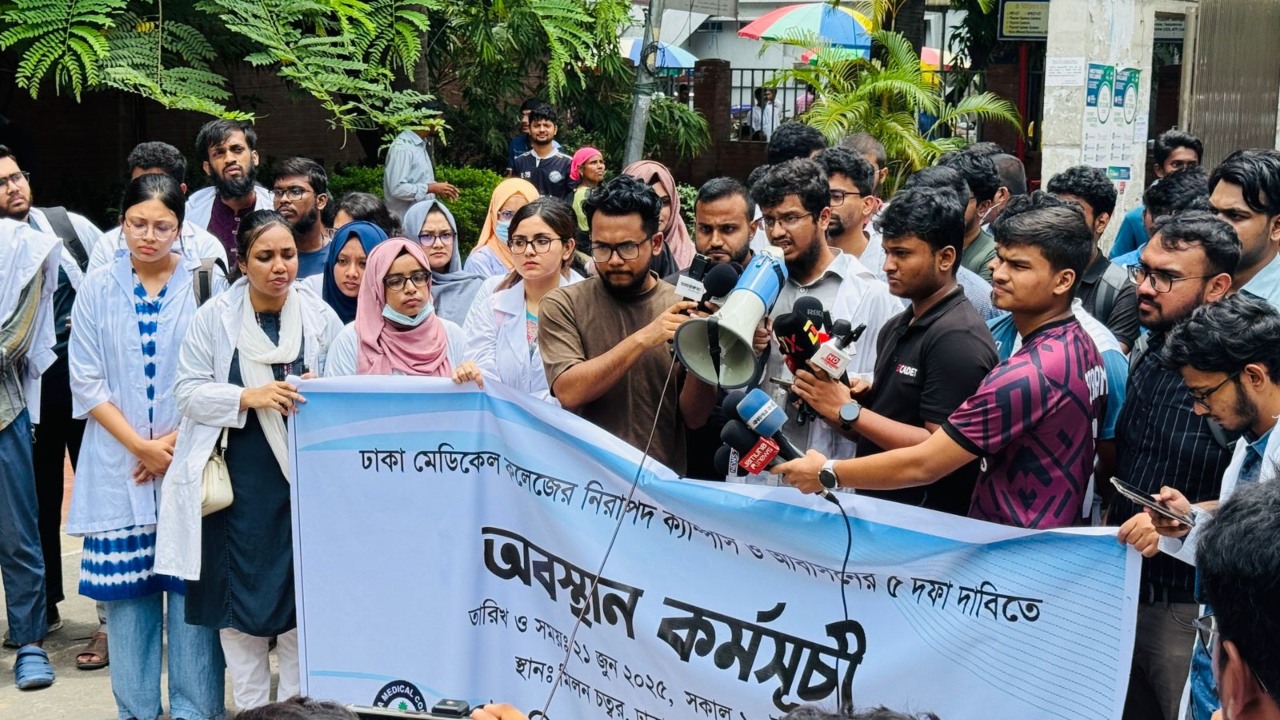 পাঁচ দফা দাবিতে ঢামেক শিক্ষার্থীদের অবস্থান কর্মসূচি