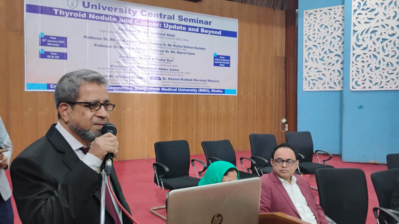 সোমবার (১৯ জানুয়ারি) বিএমইউর এ ব্লক অডিটোরিয়ামে ‘থাইরয়েড নোডুল ও ক্যান্সার: হালনাগাদ ও ভবিষ্যৎ ভাবনা’ শীর্ষক ইউনিভার্সিটি সেন্ট্রাল সেমিনারে এসব তথ্য তুলে ধরা হয়।