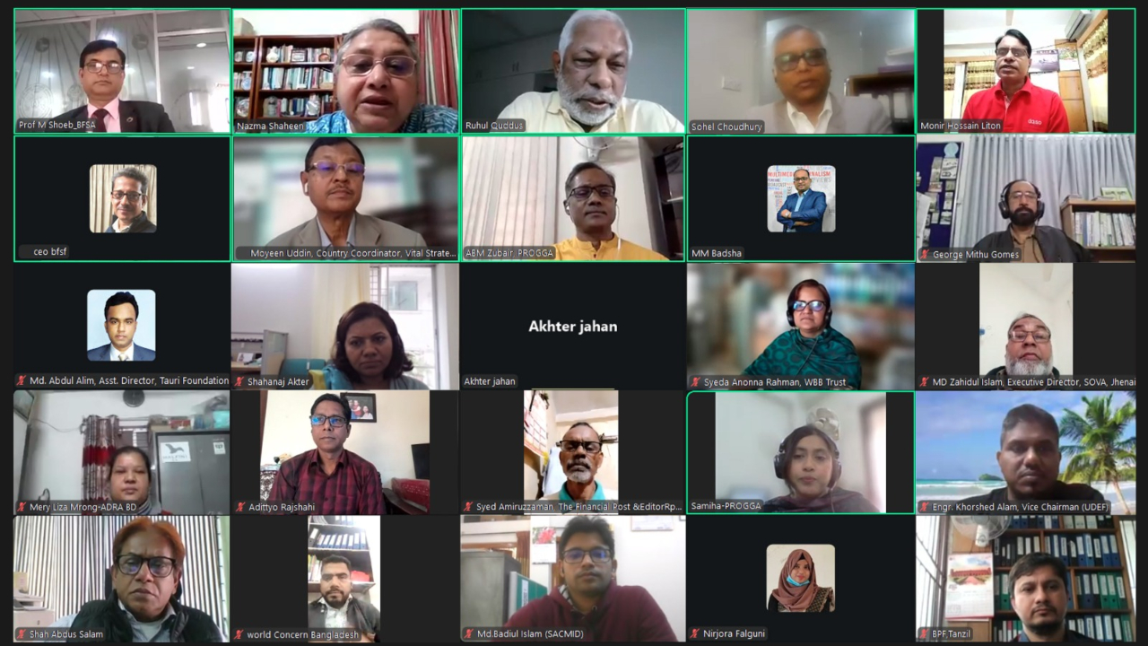 ওয়েবিনারে আলোচক হিসেবে আরও বক্তব্য দেন ডেইলি টাইমস অব বাংলাদেশ-এর হেড অব অনলাইন (বাংলা) মো. মনির হোসেন লিটন। প্রজ্ঞার নির্বাহী পরিচালক এবিএম জুবায়েরের সভাপতিত্বে আয়োজিত ওয়েবিনারটি সঞ্চালনা করেন প্রজ্ঞার প্রোগ্রাম অফিসার সামিহা বিনতে কামাল।