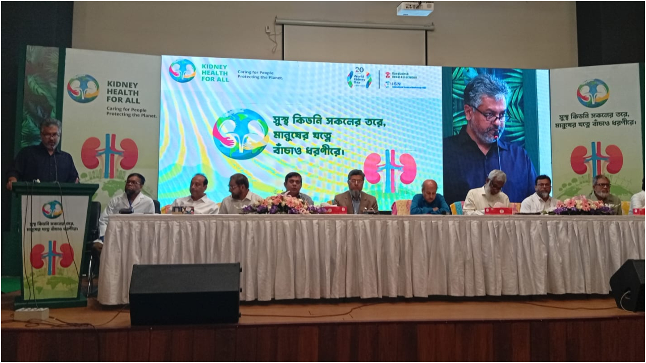 বিশ্ব কিডনি দিবস ২০২৬ উপলক্ষ্যে বাংলাদেশ রেনাল অ্যাসোসিয়েশনের উদ্যোগে রাজধানীর শের-ই-বাংলা নগরস্থ ন্যাশনাল ইনস্টিটিউট অব কিডনি ডিজিজেস অ্যান্ড ইউরোলজি (নিডোর) অডিটোরিয়ামে একটি আলোচনা সভা অনুষ্ঠিত হয়েছে।