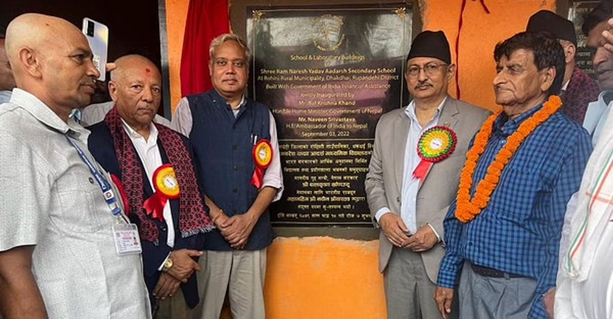 নেপালে ভারত সরকারের অর্থায়নে নির্মিত একটি স্কুল উদ্বোধন করা হয়েছে। শনিবার (৩ সেপ্টেম্বর) দেশটিতে নিযুক্ত ভারতীয় রাষ্ট্রদূত নবীন শ্রীবাস্তব এবং নেপালের স্বরাষ্ট্রমন্ত্রী বাল কৃষ্ণ খন্ড যৌথভাবে এই স্কুলটি উদ্বোধন করেন।