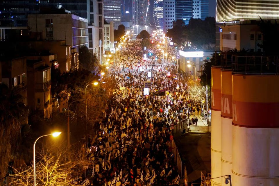 রয়টার্স বলছে, প্রধানমন্ত্রী বেঞ্জামিন নেতানিয়াহুর সরকার সংস্কারের জন্য সুপ্রিম কোর্টকে লক্ষ্যবস্তু করার পর জানুয়ারির প্রথম দিক থেকে প্রতি সপ্তাহের শনিবার বিপুল সংখ্যক ইসরায়েলি বিক্ষোভ করে আসছেন।