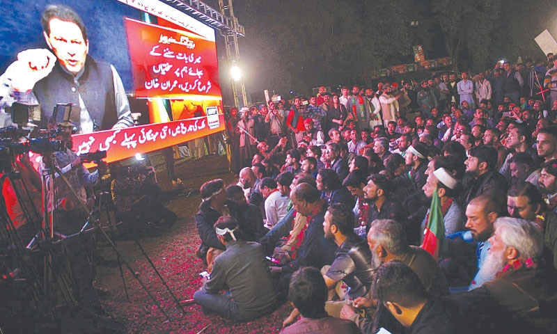 দ্য ডন বলছে, শনিবার ইমরান খান তার দলের নেতা ও কর্মীদের উদ্দেশে ভাষণ দেন। পাকিস্তানের সাবেক এই প্রধানমন্ত্রীর ভাষণ লাহোরের জামান পার্কে তার বাসভবনের বাইরে একটি মাঠসহ সারা দেশের বড় শহরগুলোতে বড় স্ক্রিনে সম্প্রচার করা হয়।