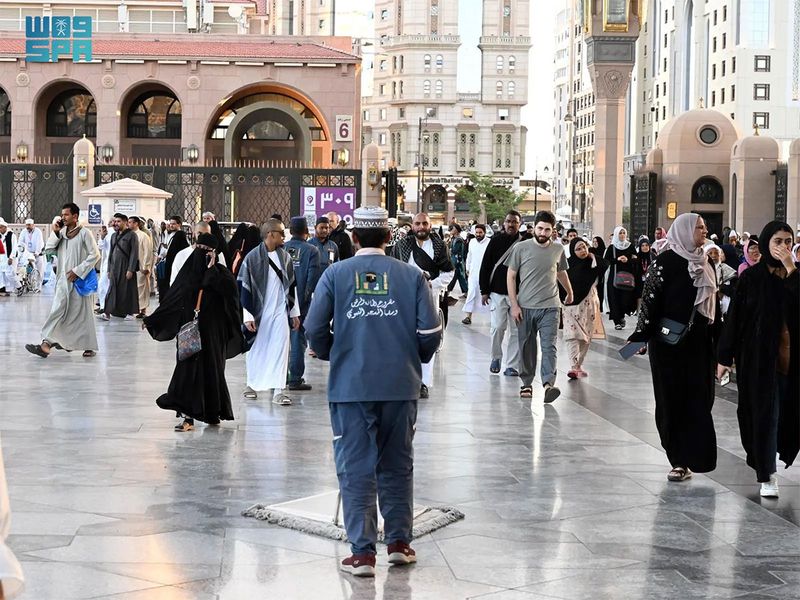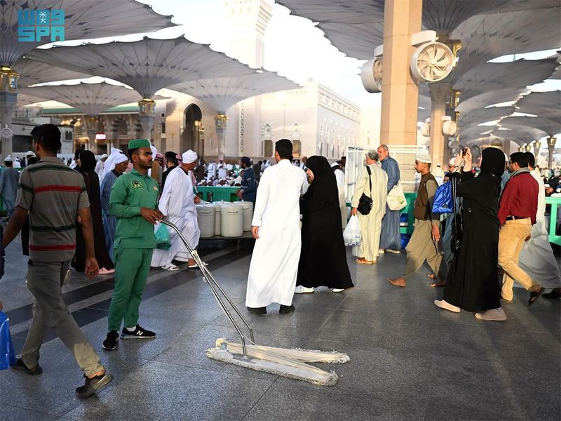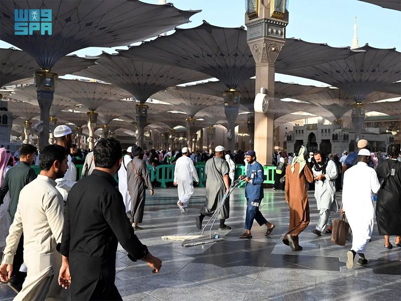ছবিতে দেখুন মসজিদে নববী পরিষ্কার-পরিচ্ছন্নতার কাজ