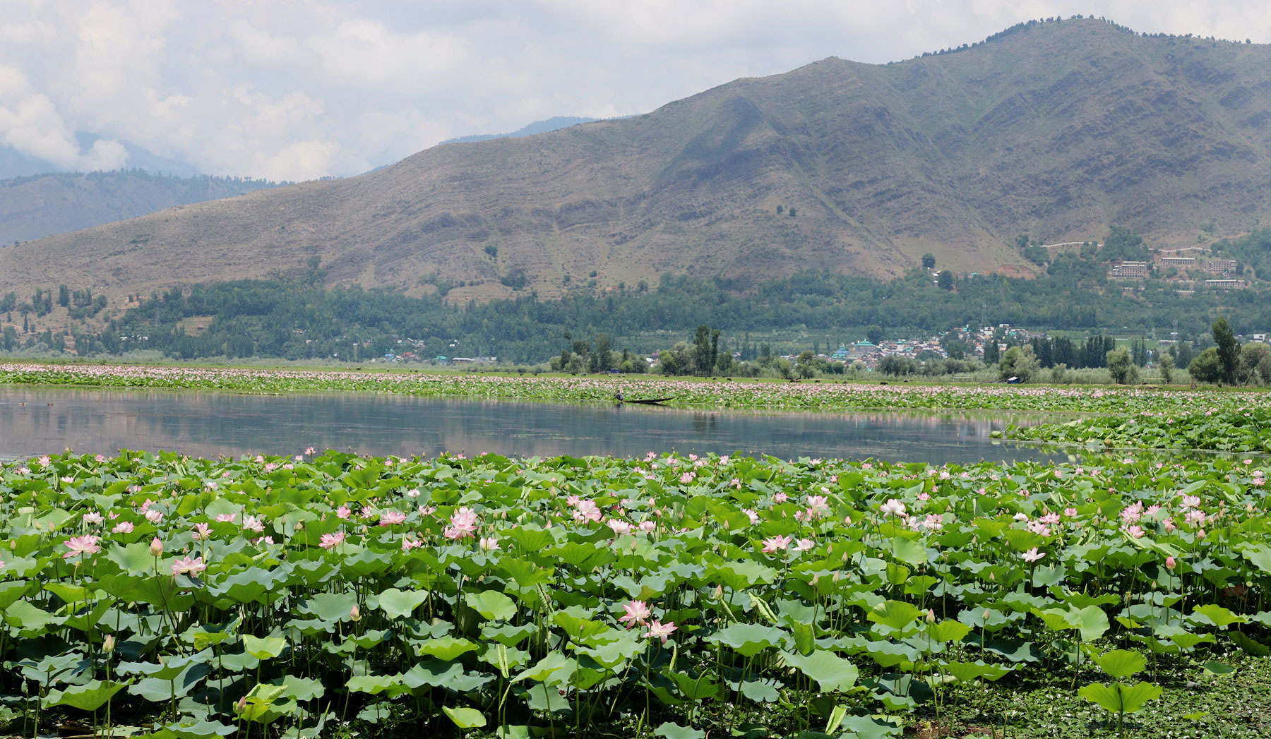 ভারতের জম্মু ও কাশ্মির রাজ্যের উলার হ্রদে ফুটে রয়েছে রাশি রাশি গোলাপি পদ্ম। যেন গোলাপি পদ্মের সমুদ্র! আর সে দিকে বিস্মিত হয়ে তাকিয়ে এক প্রৌঢ়। মাঝেমধ্যে ছুঁয়ে দেখছেন পদ্মপাপড়ি। এ-ও কি সম্ভব! নিজের চোখকে যেন বিশ্বাসই করতে পারছেন না তিনি।
