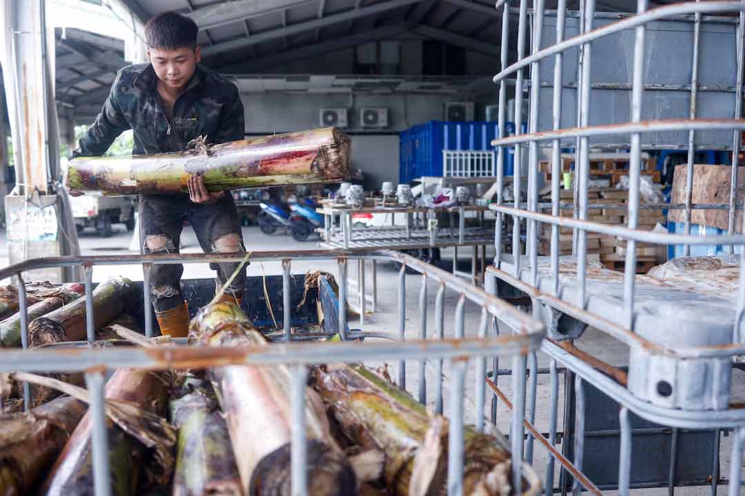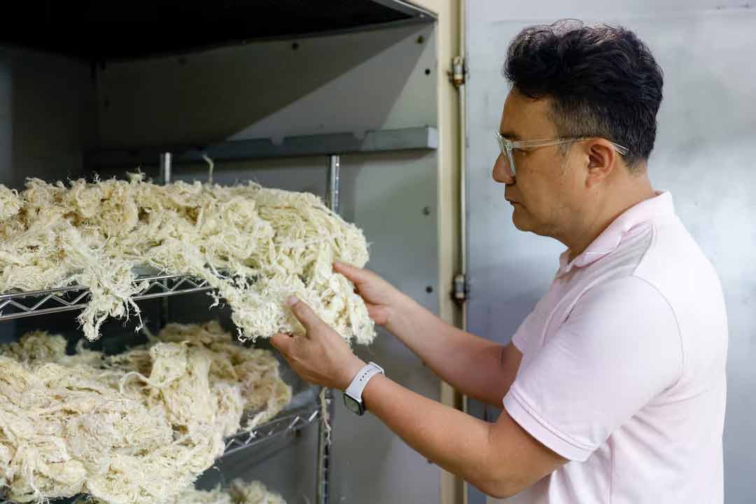 ইয়াংয়ের কোম্পানি কলা গাছের মাঝের অংশ — যা সাধারণত কলা কাটার পর মাঠেই ফেলে দেওয়া হয় — তা সংগ্রহ করে চেপে ও শুকিয়ে আঁশ তৈরি করছে। এসব আঁশ থেকে কাপড় তৈরি সম্ভব।