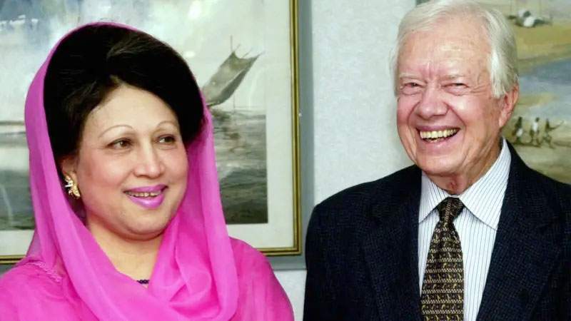 ২০০১ সালের জাতীয় নির্বাচনের প্রস্তুতি দেখতে তিন দিনের সফরে বাংলাদেশে আসেন সাবেক মার্কিন রাষ্ট্রপতি জিমি কার্টার। এসময় দেশটির শীর্ষ রাজনৈতিক নেতাদের সাথে দেখা করেন তিনি। তেসরা অগাস্ট খালেদা জিয়ার সাথে দেখা করতে গেলে হাসিমুখে ক্যামেরার সামনে দাঁড়ান তারা।