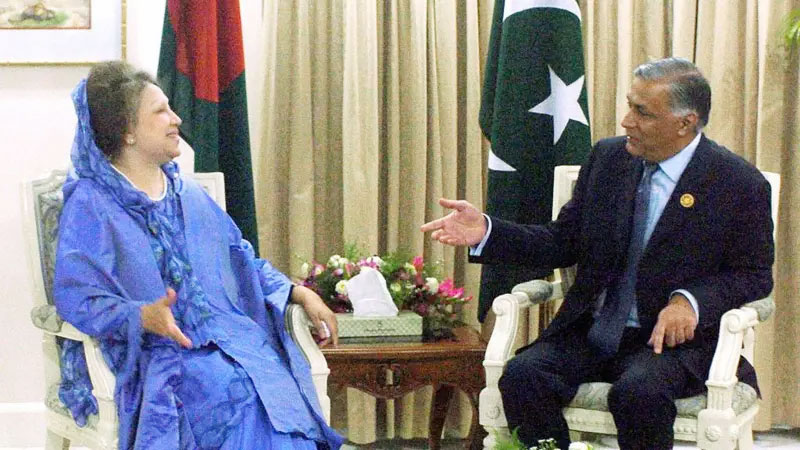 ২০০৫ সালের ১২ই নভেম্বর ঢাকায় ১৩তম দক্ষিণ এশীয় আঞ্চলিক সহযোগিতা সংস্থা (সার্ক) শীর্ষ সম্মেলনের ফাঁকে বাংলাদেশের প্রধানমন্ত্রী খালেদা জিয়ার সাথে দ্বিপাক্ষিক বৈঠকে কথা বলছেন পাকিস্তানের প্রধানমন্ত্রী শওকত আজিজ।