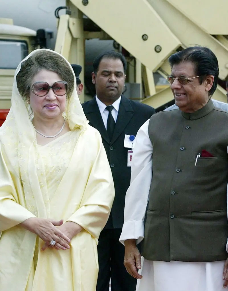 ২০০২ সালের দোসরা মার্চ নয়াদিল্লিতে বাংলাদেশের প্রধানমন্ত্রী খালেদা জিয়ার সাথে পশ্চিমবঙ্গের তৎকালীন মুখ্যমন্ত্রী জ্যোতি বসু।