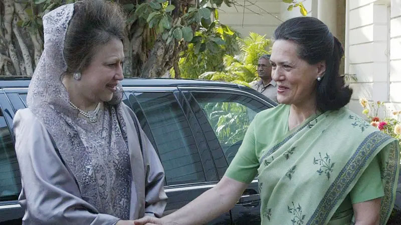 একইদিন নয়াদিল্লিতে গান্ধীর বাসভবনে কংগ্রেস পার্টির সভাপতি সোনিয়া গান্ধীর সাথে করমর্দন করেন খালেদা জিয়া।