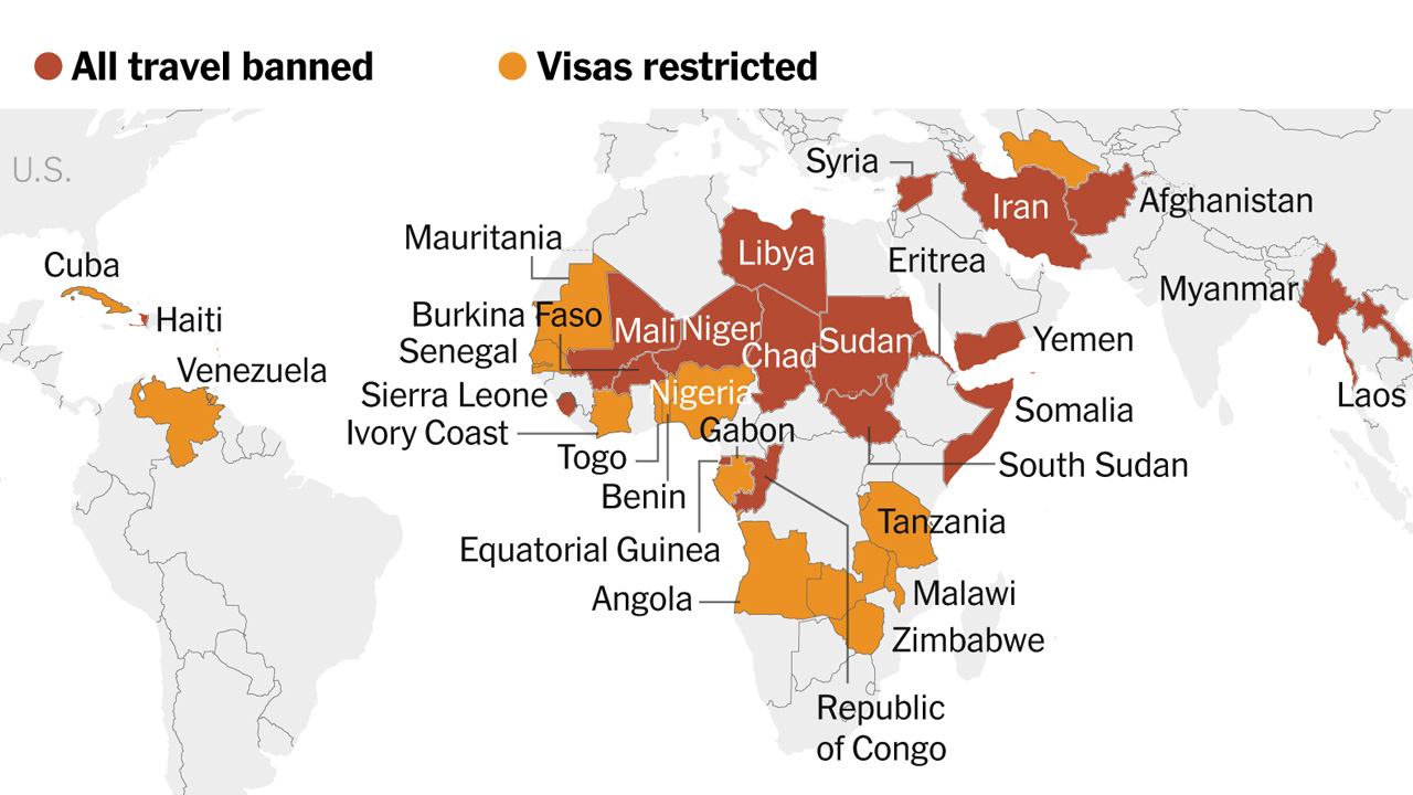 যুক্তরাষ্ট্র-ভিত্তিক থিঙ্কট্যাংক প্রতিষ্ঠান কাউন্সিল অন ফরেন রিলেশনসের তথ্য অনুযায়ী, বর্তমানে ৩৯টি দেশের নাগরিক যুক্তরাষ্ট্রে প্রবেশে পূর্ণ কিংবা আংশিক নিষেধাজ্ঞার আওতায় রয়েছে।