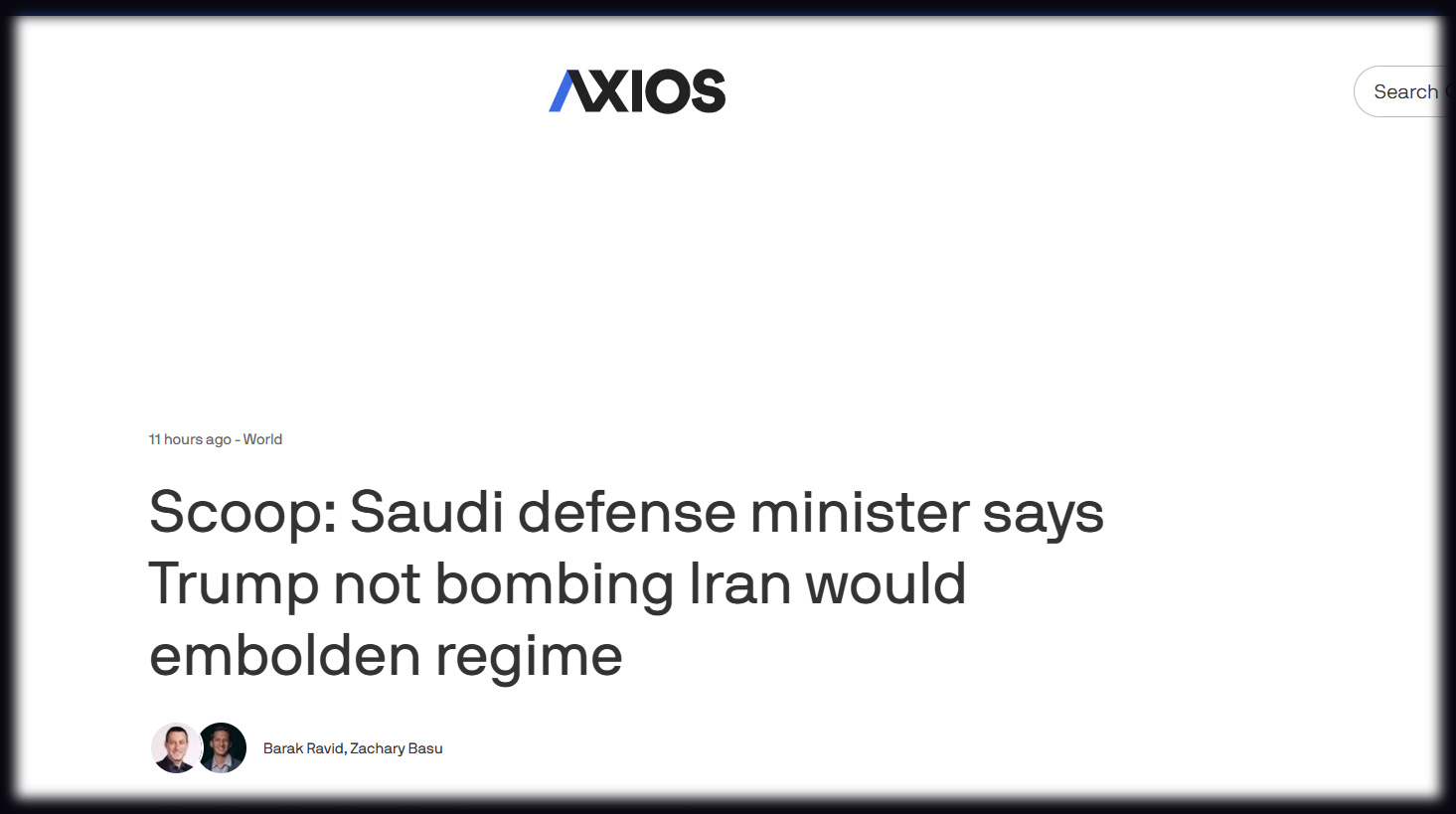 সংবাদমাধ্যমটি বলেছে, সৌদি আরব প্রকাশ্যে ইরানে হামলা চালানোর বিরুদ্ধে বলে আসছে। তিন সপ্তাহ আগেও ক্রাউন প্রিন্স মোহাম্মদ বিন সালমান প্রেসিডেন্ট ট্রাম্পকে ইরানে হামলা না চালাতে হুঁশিয়ারি দিয়েছিলেন। তার অনুরোধের প্রেক্ষিতে ওই সময় হামলা পরিকল্পনা স্থগিত করেন ট্রাম্প। কিন্তু এখন সৌদির প্রতিরক্ষাবমন্ত্রী উল্টো অবস্থান ব্যক্ত করেছেন। তিনি হামলা চালানোর জন্য পক্ষে কথা বলেছেন।