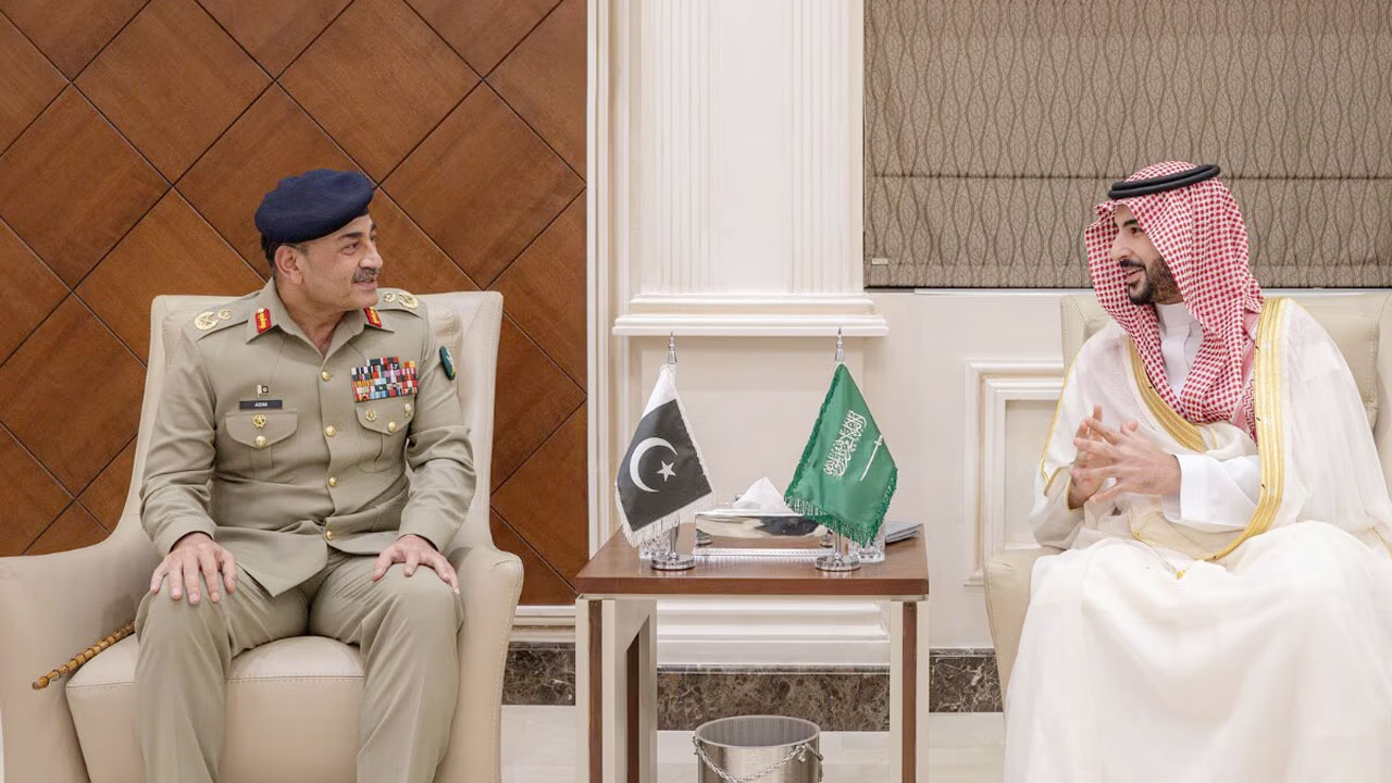 সামাজিক যোগাযোগমাধ্যম এক্সে পোস্ট করা সেই বিবৃতিতে বলা হয়েছে, “সৌদি আরবের ভূখণ্ডে ইরানের আগ্রাসী হামলা নিয়ে প্রতিরক্ষমন্ত্রী খালিদ বিন সালমান আল সৌদের সঙ্গে পাকিস্তানের প্রতিরক্ষা বিভাগ ও সেনাপ্রধান ফিল্ড মার্শাল আসিম মুনিরের সঙ্গে বৈঠক হয়েছে। পাকিস্তানের সঙ্গে স্বাক্ষরিত প্রতিরক্ষা চুক্তির আওতায় হয়েছে এ বৈঠক।”