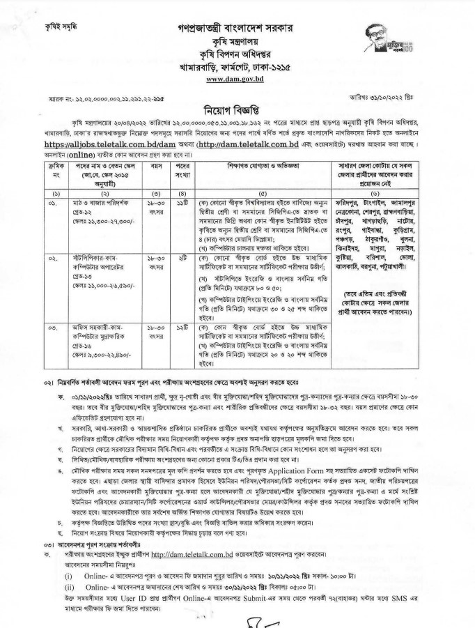 আবেদন যেভাবে : আগ্রহীদের http://dam.teletalk.com.bd/ এই ওয়েবসাইটে ফরম পূরণের মাধ্যমে আবেদন করতে হবে।