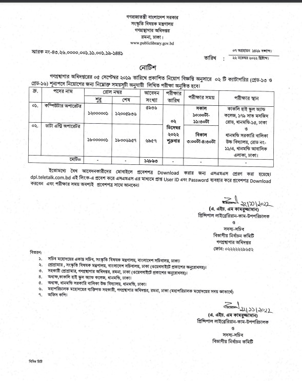 গণগ্রন্থাগার অধিদপ্তরের নিয়োগ পরীক্ষার সূচি প্রকাশ