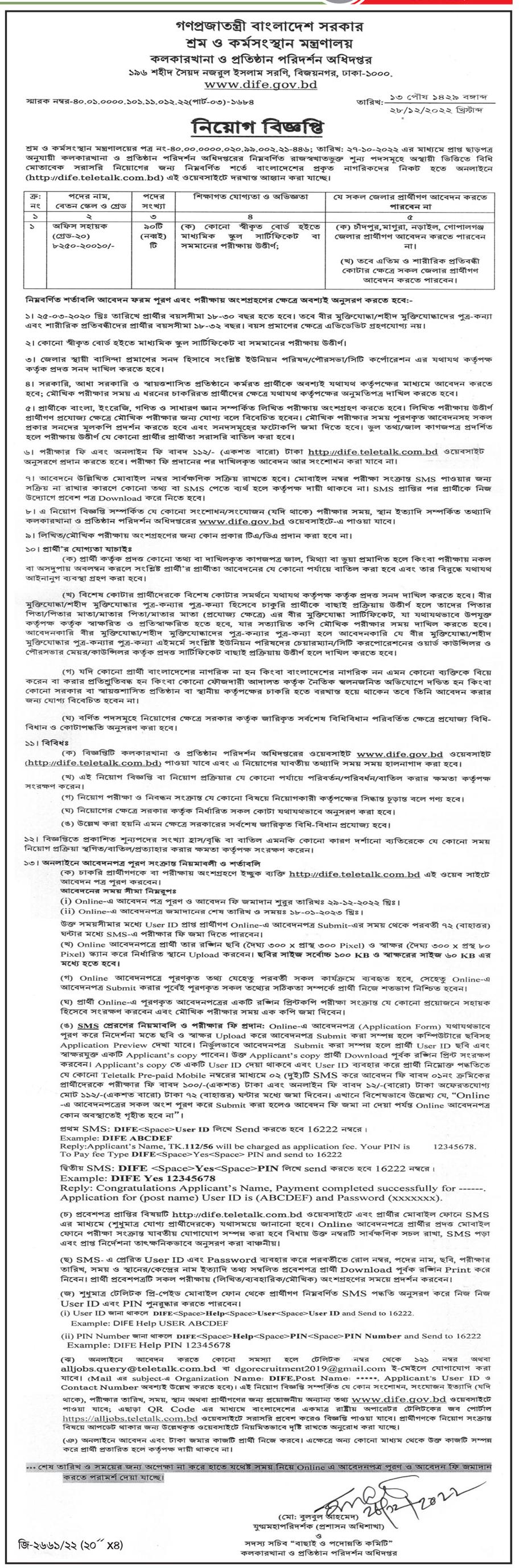 আবেদন যেভাবে : আগ্রহীদের অনলাইনে আবেদন করতে হবে। আবেদন করতে প্রবেশ করুন এখানে http://dife.teletalk.com.bd/।