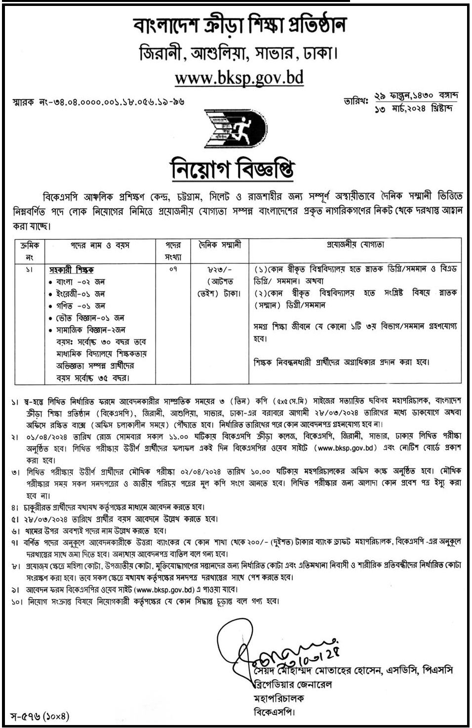 এক নজরে বিকেএসপিতে নিয়োগ বিজ্ঞপ্তি ২০২৪