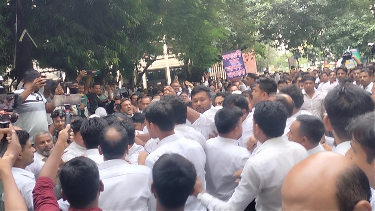 আদালত প্রাঙ্গণে বিএনপি ও আওয়ামীপন্থি আইনজীবীদের হাতাহাতি