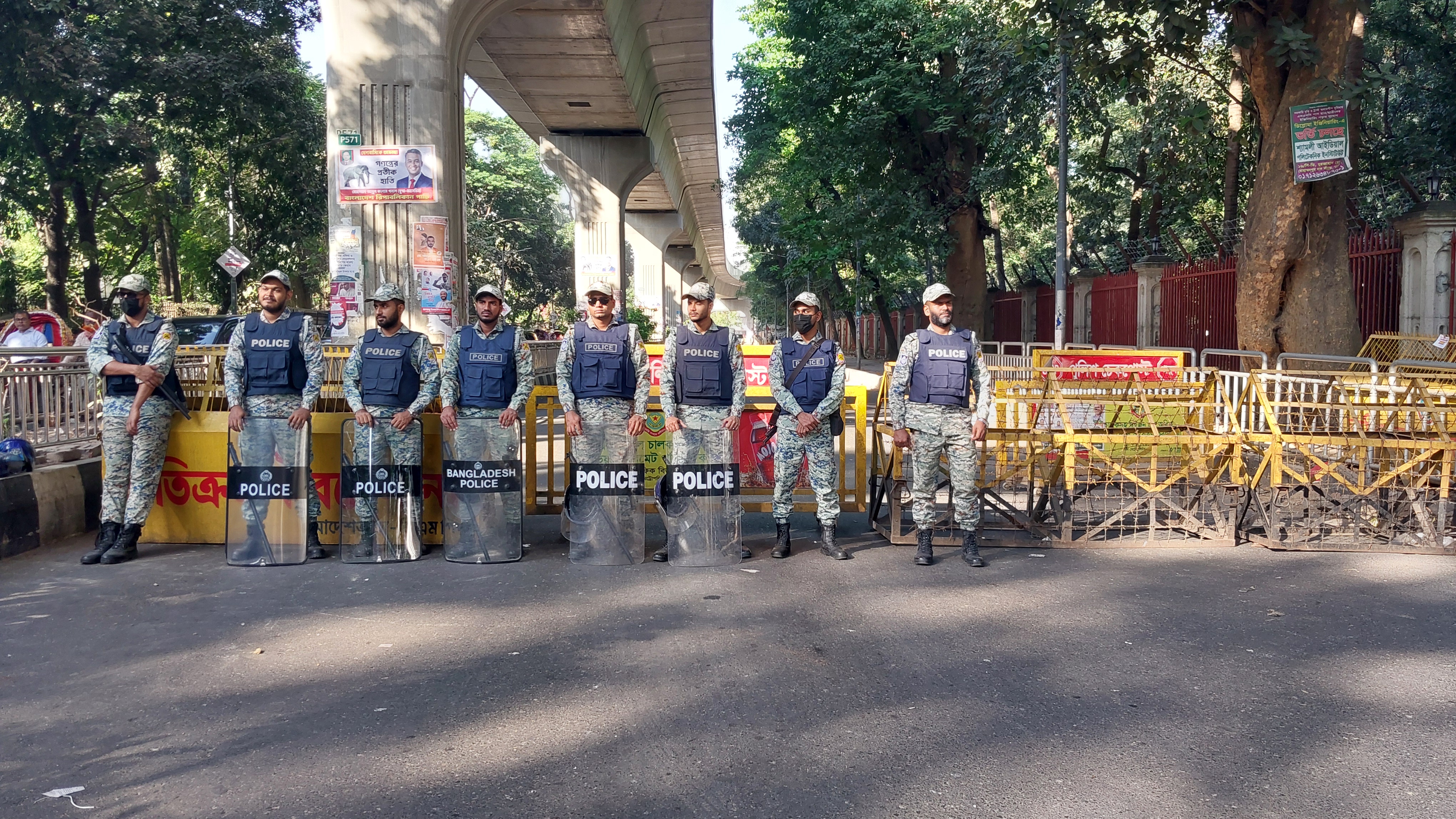 সরেজমিনে দেখা গেছে, রায় ঘোষণার দিন হিসেবে আজকে ‘উচ্চঝুঁকির সকাল’ ধরেই পুরো এলাকায় বহুস্তর নিরাপত্তা ব্যবস্থা গড়ে তোলা হয়। আন্তর্জাতিক অপরাধ ট্রাইব্যুনালের সামনে থেকে হাইকোর্ট মোড়, সুপ্রিম কোর্টের মূল গেট থেকে মাজার গেট পর্যন্ত টহল ও তল্লাশি কার্যক্রম সাধারণ দিনের তুলনায় বহু গুণ বাড়ানো হয়েছে। মোটরসাইকেল থামিয়ে কাগজপত্র দেখা, হাঁটতে থাকা মানুষকে পথের উদ্দেশ্য জিজ্ঞেস করা- সব মিলিয়ে পরিবেশে সতর্কতার চাপা উপস্থিতি স্পষ্ট।