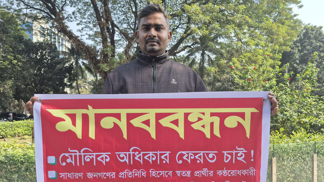 প্রার্থিতা ফিরে পেতে সুপ্রিম কোর্টের সামনে স্বতন্ত্র প্রার্থীর মানববন্ধন