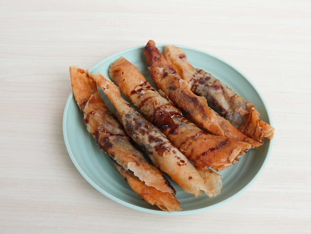 একটি প্যানে তেল গরম করে নিন। তেল গরম হয়ে এলে আঁচ কমিয়ে দিয়ে তাতে রোলের আকারে মোড়ানো র্যাপারসগুলোকে দিয়ে ভেজে নিন। একটু বাদামি রং হলেই তুলে নিতে হবে। রাইস র্যাপারস না থাকলে আপনি চাইলে রোলের জন্য ময়দা দিয়ে পাতলা রুটির মতো করে বানিয়ে নিতে পারেন। চাইলে ঠান্ডা আইসক্রিম দিয়েও পরিবেশন করতে পারেন।