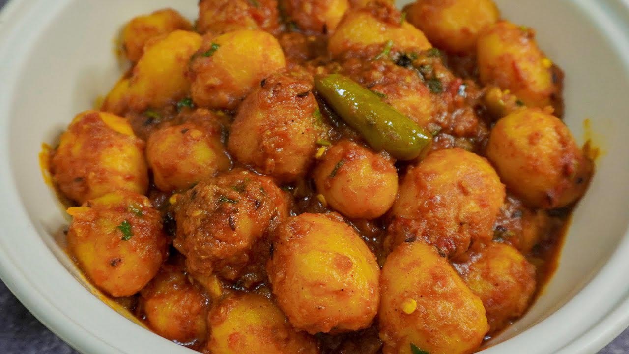 কেটে রাখা আলু পানি ও সামান্য লবণ দিয়ে সেদ্ধ করে নিন। এরপর একটি কড়াইতে তেল গরম করে তাতে তেজপাতা ফোঁড়ন দিয়ে রসুন বাটা ও আদা বাটা দিয়ে দিন। তারপর একে একে লবণ, হলুদ গুঁড়া, মরিচের গুঁড়া, ধনিয়া গুঁড়া ও জিরা গুঁড়া দিয়ে কষিয়ে নিন। অল্প পানি দিয়ে মসলাগুলো কষিয়ে নিন। টমেটো পিউরি ও টকদই দিয়ে ভালোভাবে মিশিয়ে নিন। কষানো হলে তাতে আলু দিয়ে নেড়েচেড়ে দিন। চুলার আঁচ কমিয়ে সেদ্ধ হতে দিন।