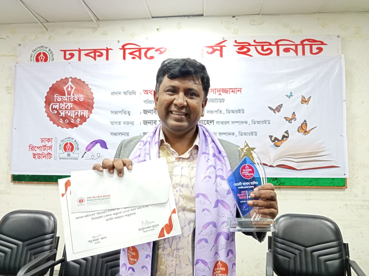 ঢাকা পোস্টের বিশেষ প্রতিনিধি মেহেদী হাসান ডালিমসহ ২৯ সাংবাদিককে লেখক সম্মাননা দিয়েছে ঢাকা রিপোর্টার্স ইউনিটি (ডিআরইউ)। সদস্যদের সাহিত্য চর্চায় উৎসাহিত করতে এ লেখক সম্মাননার আয়োজন করে ডিআরইউ।