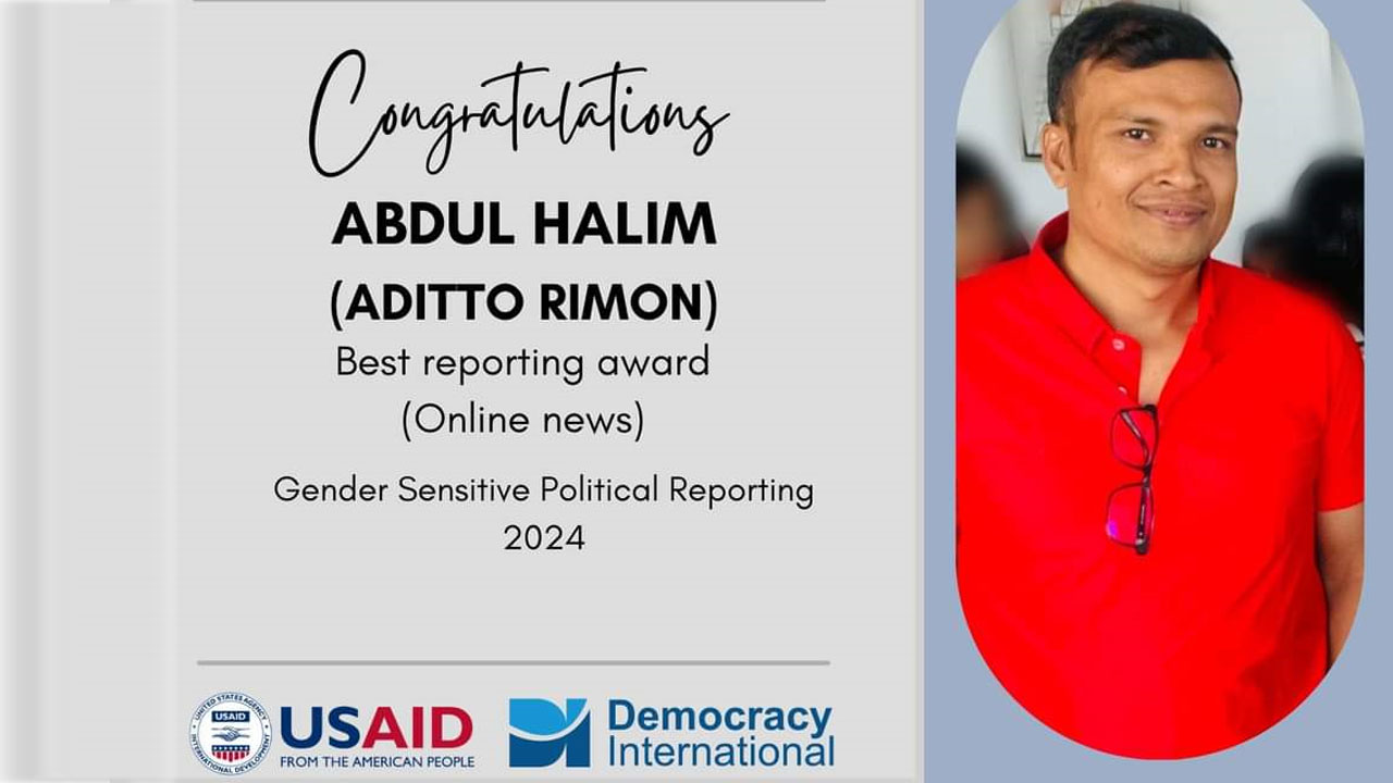 রাজনৈতিক প্রতিবেদক আদিত্য রিমন ইউএসএইড ঘোষিত জেন্ডার সেনসিটিভ পলিটিক্যাল রিপোর্টিং অ্যাওয়ার্ড-২০২৪ অর্জন করেন।