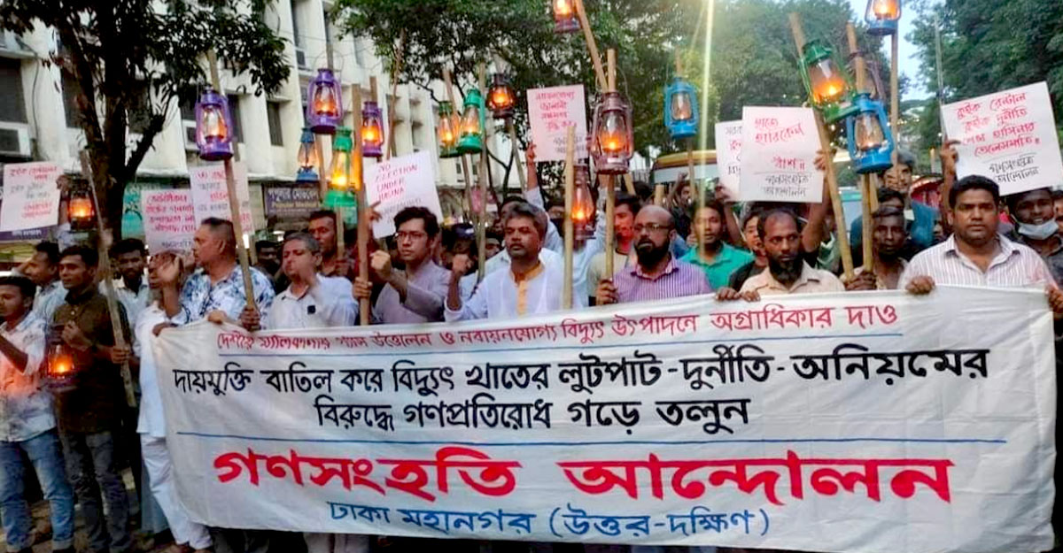 বিদ্যুৎ খাতে সীমাহীন লুটপাট-দুর্নীতির অভিযোগ এনে এর প্রতিবাদে হারিকেন নিয়ে বিক্ষোভ সমাবেশ ও মিছিল করেছে গণসংহতি আন্দোলন।