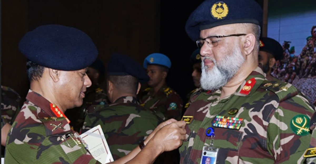 মঙ্গলবার (২৩ আগস্ট) ঢাকা সেনানিবাসের মাল্টিপারপাসে প্রশংসাপত্র ও ইনসিগনিয়া পরিয়ে দেন সেনাবাহিনী প্রধান জেনারেল এস এম শফিউদ্দিন আহমেদ। তাদের মধ্যে দুইজন আভিযানিক সফলতার জন্য পুরস্কৃত হয়েছেন।