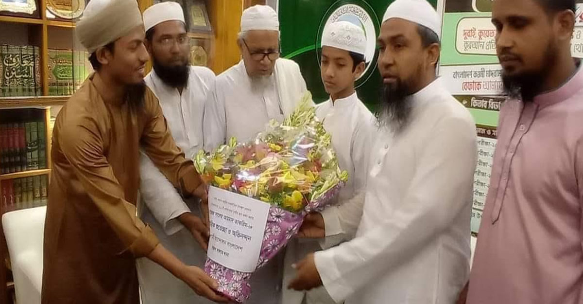 এ সময় তিনি বলেন, কোরআনের পাখি বিশ্বজয় করে এসেছে। সৌদি আরবের রাষ্ট্রীয় আয়োজনে অনুষ্ঠিত প্রতিযোগিতায় ৩য় স্থান অধিকার করে লাল-সবুজের পতাকাকে আরও মর্যাদা পূর্ণ করেছে। যা দেশবাসীর জন্য অত্যন্ত গৌরবের ও আনন্দের। আমরা তার উত্তরোত্তর সফলতা কামনা করছি। মহান আল্লাহ যেন হাফেজ সালেহ তাকরিমকে দ্বীনের আরও বড় বড় খেদমতের জন্য কবুল করেন।