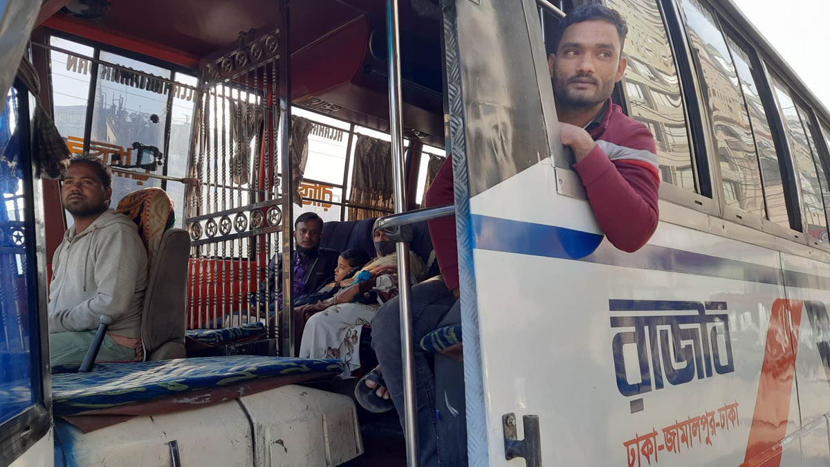 অর্ণব বিশ্বাস, ঢাকায় একটি বেসরকারি প্রতিষ্ঠানে চাকরি করেন। প্রতি বৃহস্পতিবার চলে যান গ্রামের বাড়ি জামালপুরে। ঢাকার পরিস্থিতি বিবেচনায় এ সপ্তাহে বাড়ি যাবেন না বলে সিদ্ধান্ত নেন। সে মোতাবেক মহাখালী বাস টার্মিনালে এসে টিকিট কেটে এখন এক ঘণ্টারও বেশি বসে অপেক্ষা করছেন তিনি।