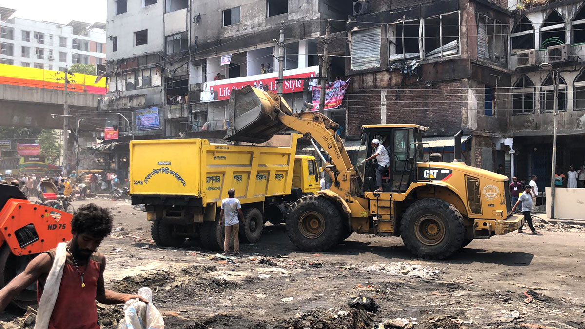 চলছে ধ্বংসস্তূপ সরানোর কাজ, ব্যবসায়ীদের ঘুরে দাঁড়ানোর চেষ্টা