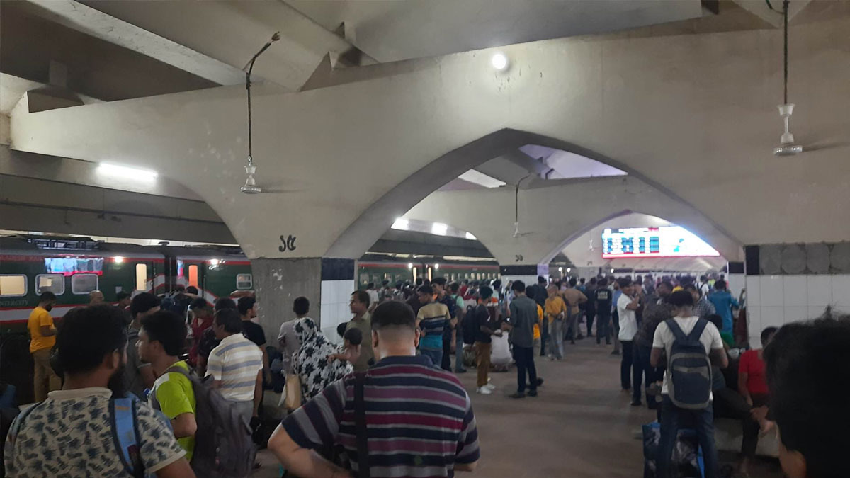 স্টেশন সূত্রে জানা গেছে, বৃহস্পতিবার সন্ধ্যার পর থেকে রাত সাড়ে ১০টা পর্যন্ত কয়েকটি ট্রেনে অন্তত ৬ হাজার মানুষ ঢাকা স্টেশন অতিক্রম করেছে। বিনা টিকিটের যাত্রীদের স্টেশনে প্রবেশ প্রতিহত করতে রেলওয়ের কয়েকজন কর্মকর্তা আহতও হয়েছেন।