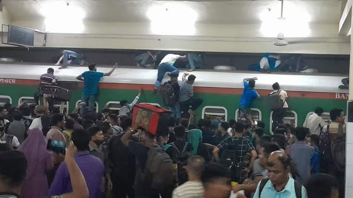 ট্রেনে ঈদযাত্রার শুরুর দিন অর্থাৎ ১৭ এপ্রিল থেকে ২০ এপ্রিল বিকেল পর্যন্ত স্টেশন ব্যবস্থাপনার সব কিছু ঠিকঠাকই ছিল। কিন্তু বৃহস্পতিবার সন্ধ্যার পরে মানুষের চাপে ভেঙে যায় স্টেশনগুলোর সেই কঠোর ব্যবস্থাপনা। সব বাধা উপেক্ষা করে ট্রেনের ভেতরে দাঁড়ানোর জায়গা না পেয়ে শেষ পর্যন্ত ট্রেনের ছাদে উঠে যায় ঘরমুখো মানুষ। জীবনের ঝুঁকি নিয়ে বেছে নেয় অনিরাপদ যাত্রা। ঈদের সময় ট্রেনে ঘরে ফেরার সেই চিরচেনা আবারও ভেসে ওঠে। আবেগী কণ্ঠে ছাদে উঠা সবার একটাই মন্তব্য, ‘যে করেই হোক ঈদে বাড়ি যেতে হবে।’