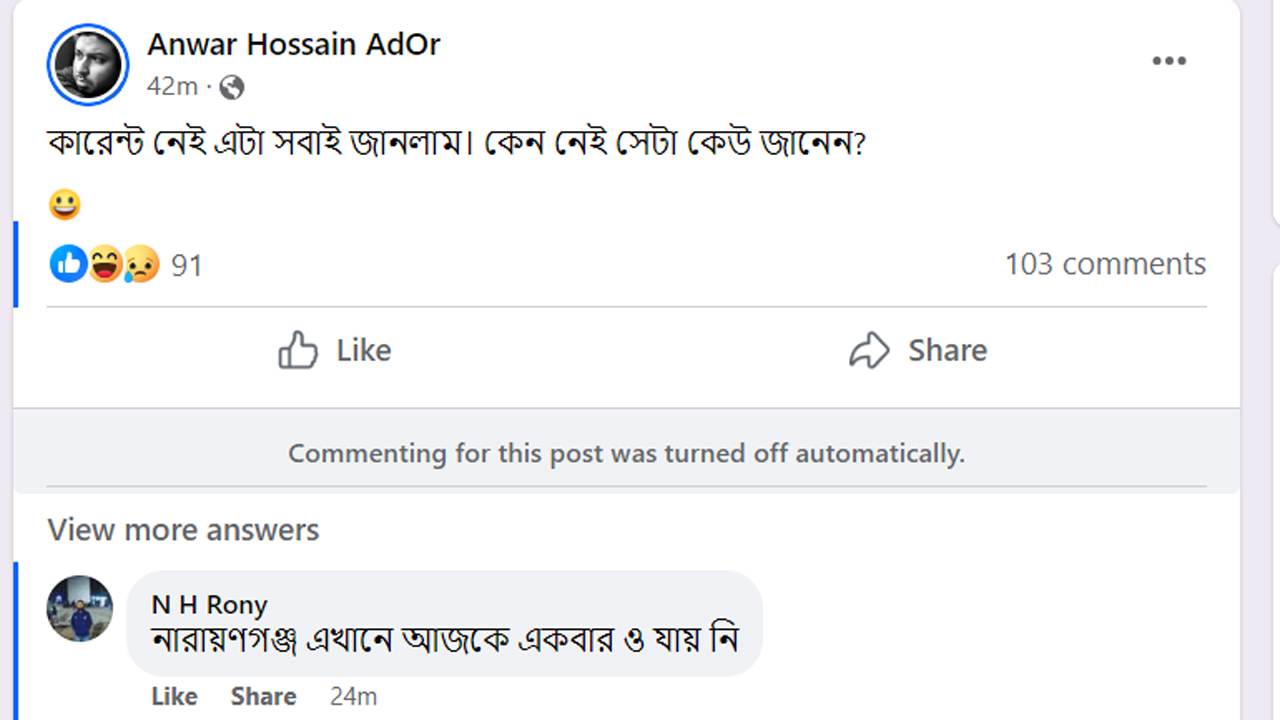 বিদ্যুৎ নেই ঢাকার অনেক এলাকায়, ফেসবুকে কারণ খুঁজছেন রাজধানীবাসী