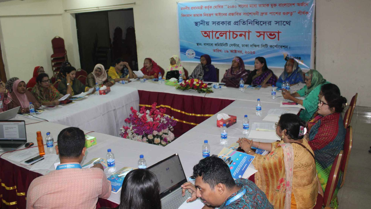 আলোচনা সভায় সভাপতিত্ব করেন নারী মৈত্রীর নির্বাহী পরিচালক শাহীন আকতার ডলি। সভায় আরও উপস্থিত ছিলেন ঢাকা দক্ষিণ সিটি কর্পোরেশনের স্থানীয় সরকার প্রতিনিধি মাকছুদা শমশের, মিনু রহমান, ফারহানা ইয়াছমীন কুয়াশা, সাথী আক্তার, খালেদা আলম, শেফালী আক্তার, নার্গিস মাহতাব, সাহিদা বেগম, নিলুফা ইয়াছমিন লাকীসহ বিভিন্ন তামাকবিরোধী সংগঠনের প্রতিনিধি এবং নারী মৈত্রির নারী দলের নেত্রীরা অংশ নেন।
