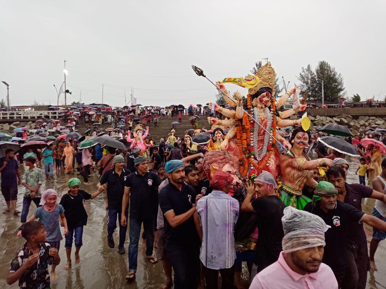 এর আগে মঙ্গলবার সকালে পূজা সম্পন্ন করে সনাতন ধর্মাবলম্বীরা। এরপর পুষ্পাঞ্জলি ও শান্তির জল ছিটানোর পর প্রতিমা বিসর্জন দেওয়া হয়। পতেঙ্গা সমুদ্র সৈকতে চট্টগ্রাম সিটি কর্পোরেশনের (চসিক) উদ্যোগে প্রতি বছরের ন্যায় এবারও প্রতিমা বিসর্জনের ব্যবস্থা গ্রহণ করা হয়। সেখানে চসিকের উদ্যোগে সৈকতে আলোকবাতি, পরিষ্কার-পরিচ্ছন্নতা, সাজসজ্জা, মঞ্চ নির্মাণ, মাইকিং, পানিসহ সব ধরনের ব্যবস্থা গ্রহণ করা হয়।