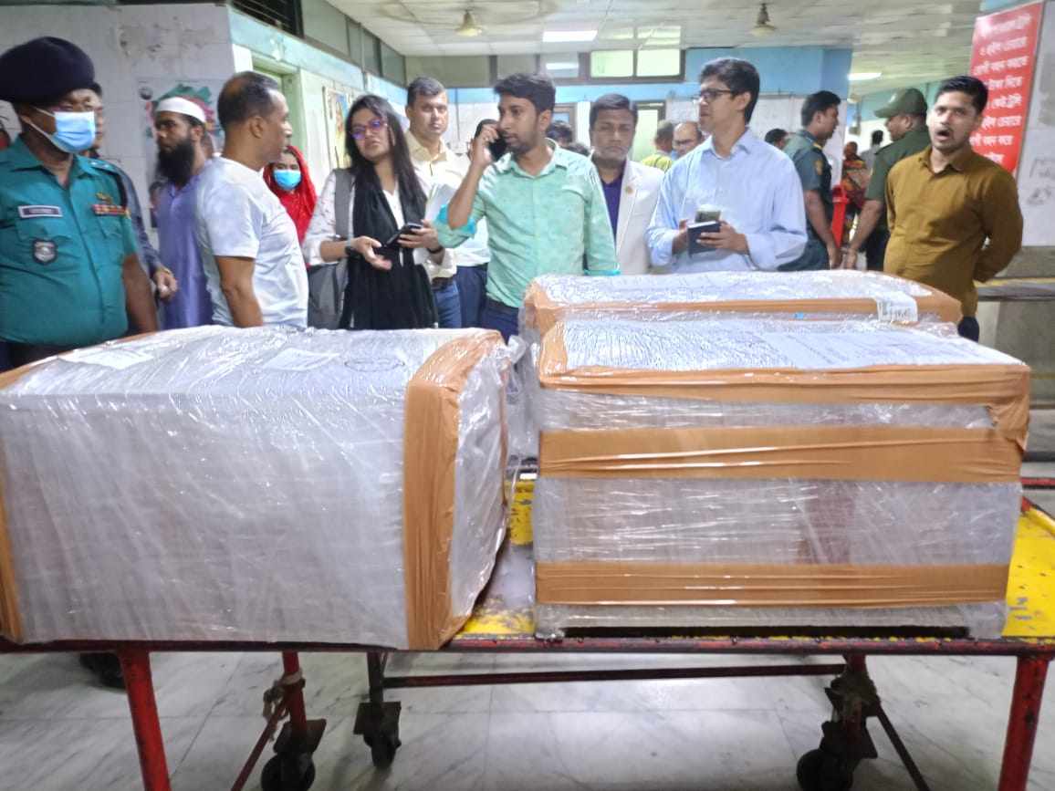 বুধবার (১৫ নভেম্বর) বিকেলে ভারতের দিল্লি থেকে ইন্ডিগো কার্গো বিমানে করে তাদের মরদেহ ঢাকার হযরত শাহজালাল আন্তর্জাতিক বিমানবন্দরে এসে পৌঁছায়। পরে সন্ধ্যা ৬ টা ২০ মিনিটে তাদের মরদেহ ময়নাতদন্ত ও ডিএনএ পরীক্ষার জন্য ঢামেকে নিয়ে আসা হয়।