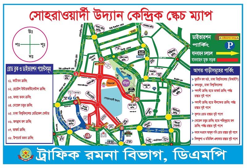 বাংলাদেশ আওয়ামী লীগ আয়োজিত জনসভা উপলক্ষ্যে সোহরাওয়ার্দী উদ্যান ও তার আশপাশের এলাকায় ভিভিআইপি গমনাগমন শেষ না হওয়া পর্যন্ত কিছু এলাকার রাস্তা বন্ধ/রোড ডাইভারশন দেওয়া হবে-
